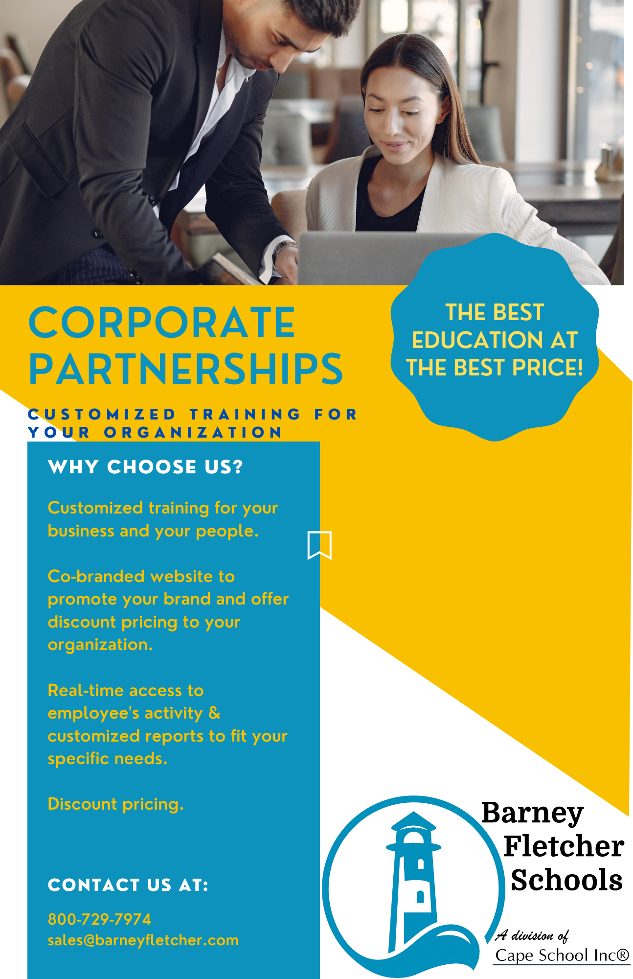 Barney Fletcher Schools offers corporate options that enable you to provide continuing education to the agents you do business with. We take care of the compliance and education so you can take care of the relationship. Barney Fletcher Schools will customize an education plan composed of classroom and self-study classes, working with you to provide quality education at a price that fits your budget.